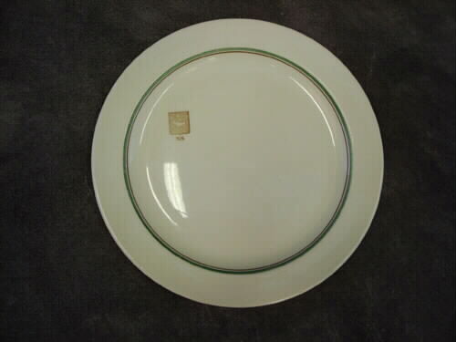- En mattallrik i vit porslin. Uppe vid kanten är det två bårder, först en grön och sedan en smalare i brun. På tallriken är det tryckt i brun färg ett märke med en ren och under den är det initialerna NS tryckt. Under fatet är det tryckt i grått GUSTAVSBERG SWEDEN BEN PORSLIN 145.