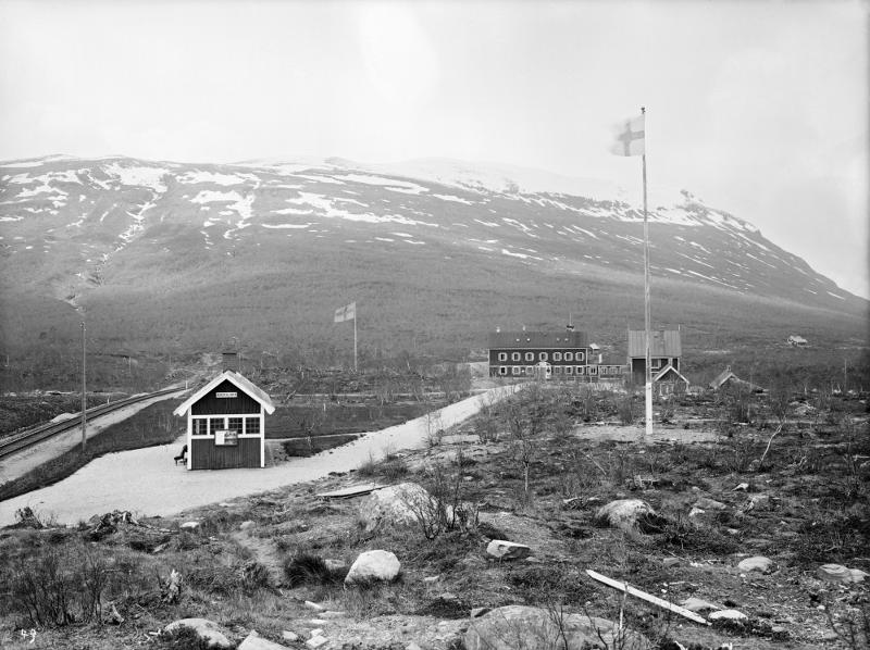 1986:1:00165:A :: turistanläggning, järnväg, fjällvärld, flagga