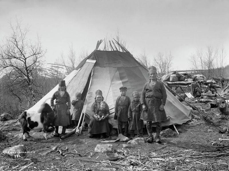 1986:1:00040:A :: kåta, viste, fjällvärld, familj, lulesamisk dräkt