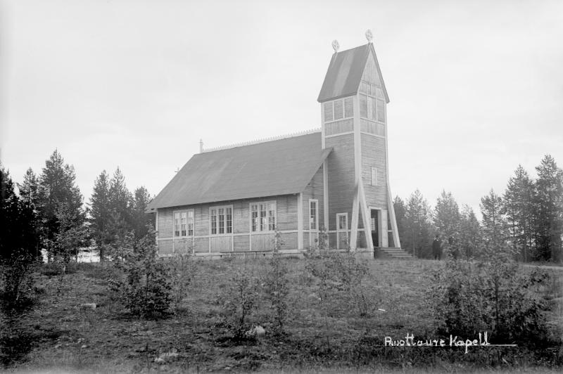 Puottaure kapell. Byggd 1907 före renoveringen 1960