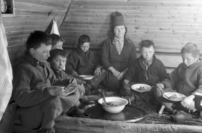måltid, nomadskolan i Vaikijaur, hushållerska Buohtta Magga Aira f. Husi