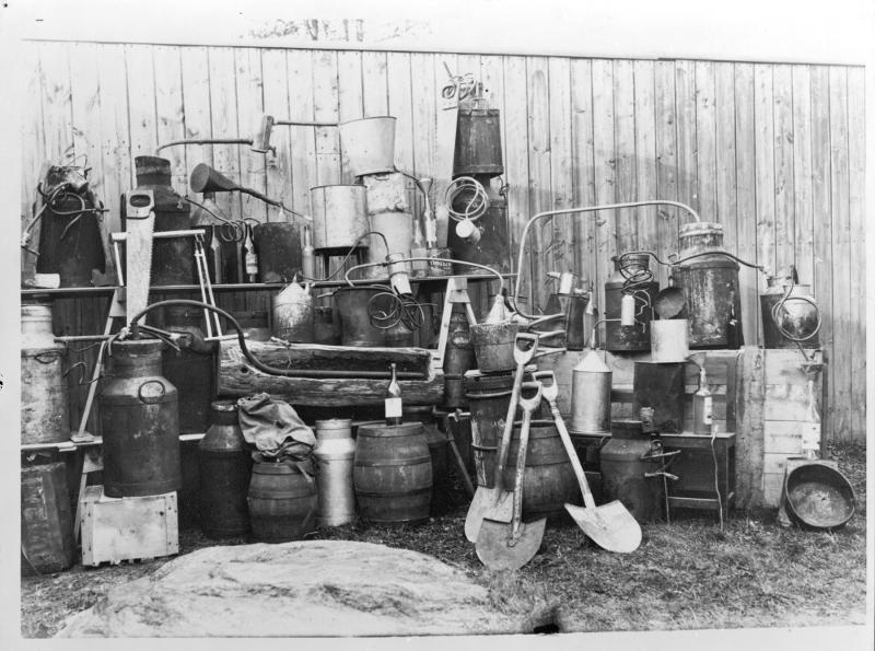 repronegativ av brännvinsapparaterna, lönnbränneriattiraljer beslagtagna av polismyndigheten