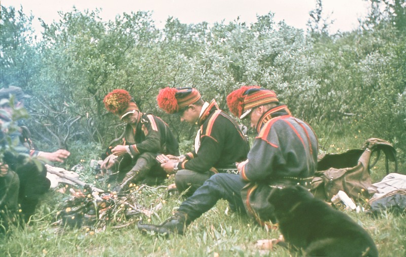1990:11:00241:D :: kafferast, dräkt, manskolt, mössa, eld, hund, nordsamisk dräkt, karesuandosamisk dräkt
