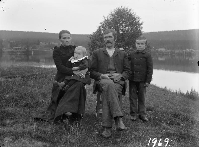 familjeporträtt, man, kvinna, barn, bybebyggelse, vattendrag