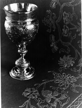 - kalken tillhör Kvikkjokks församling och skänktes av drottning Kristina och hem- togs av hennes far Gustav II från 30-åriga kriget.Tennbroderier är den s.k. Grothska på röd vadmal