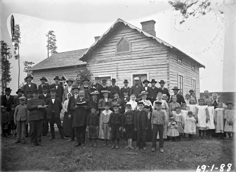 1969:7:00088:A :: grupporträtt, bybor, timmerhus, missionshus