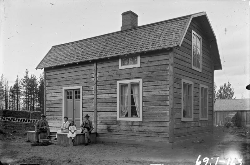 bostadshus, timmerhus, jägmästarbostad, familj, yttertrappa, ytterdörr
