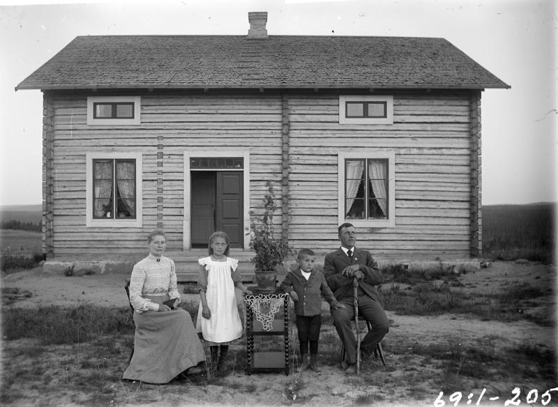 1969:7:00205:A :: familjeporträtt, bostadshus, timmerhus, ytterdörr, trädgårdsmöbel, krukväxt