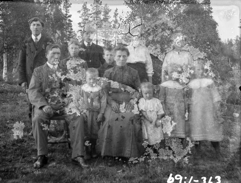 familjeporträtt; Om fotografen Anders Jakobsson berättar hans dotter Elin Jakobsson i boken "Porsi i ord och bild" från 1992.Hon berättar att fadern var fotograf. Den första i "södra delen av socken". Wästfelt från Jokkmokk var fotograf i Norra delen. Anders började nog fotografera 1899-1901. Glasplåtar. Det fotograferades till vigslar, barndop, begravningar, beväringsfoton, familjefoton, ja det mesta som hände i bygden. Enligt boken dog Anders Jakobsson föräldrar och barnen utackorderades då. Den äldste sonen Anders Jakobsson kom till en bondgård ett par mil längre bort som heter Padjerim. Där fick han slita ont med så lite materiella förnödenheter som möjligt. Någon hästkarl var han nu inte, han hade desto mer håg för maskiner och dylikt. Den lille klena gossen sysslade med sina uppfinningar, till de äldre och kamraternas förundran. Han var ej lik de andra. Anders var medlem i Missionsvännerna i bygden. Han skänkte marken som Missionshuset byggdes på i Porsi. Anders Jakobsson sysslade med mycket, som hans kropp orkade med. Han var klockslagare, och lagade allt möjligt, han snickrade m.m. När han fyllt 50 år tog han körkort i Luleå. Han köpte den första bilen i Porsi, år 1923, tydligen en lastbil. Anders Jacobsson föddes år 1865 och dog år 1940.