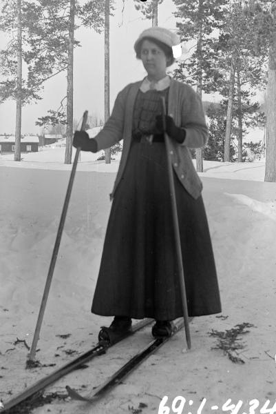 1969:7:00434:A :: kvinna, skidor, skidåkning, student, bybebyggelse