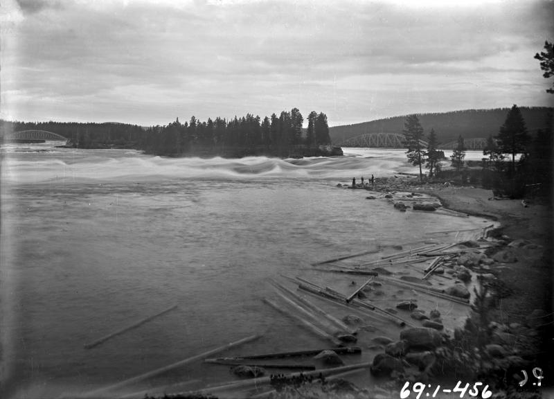 1969:7:00456:A :: älv, fors, bro, timmer, flottning, ö