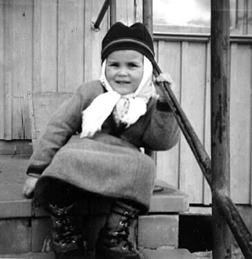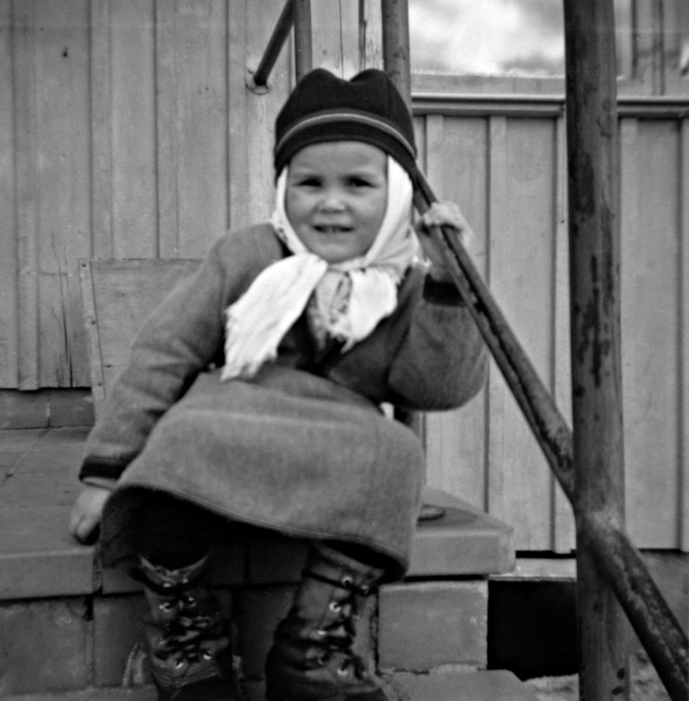 1986:5:00025:A :: barnporträtt, flicka, dräkt, barnkolt, mössa, schal, barn, sjal, lulesamisk dräkt