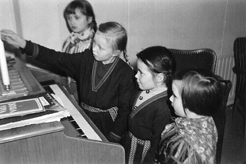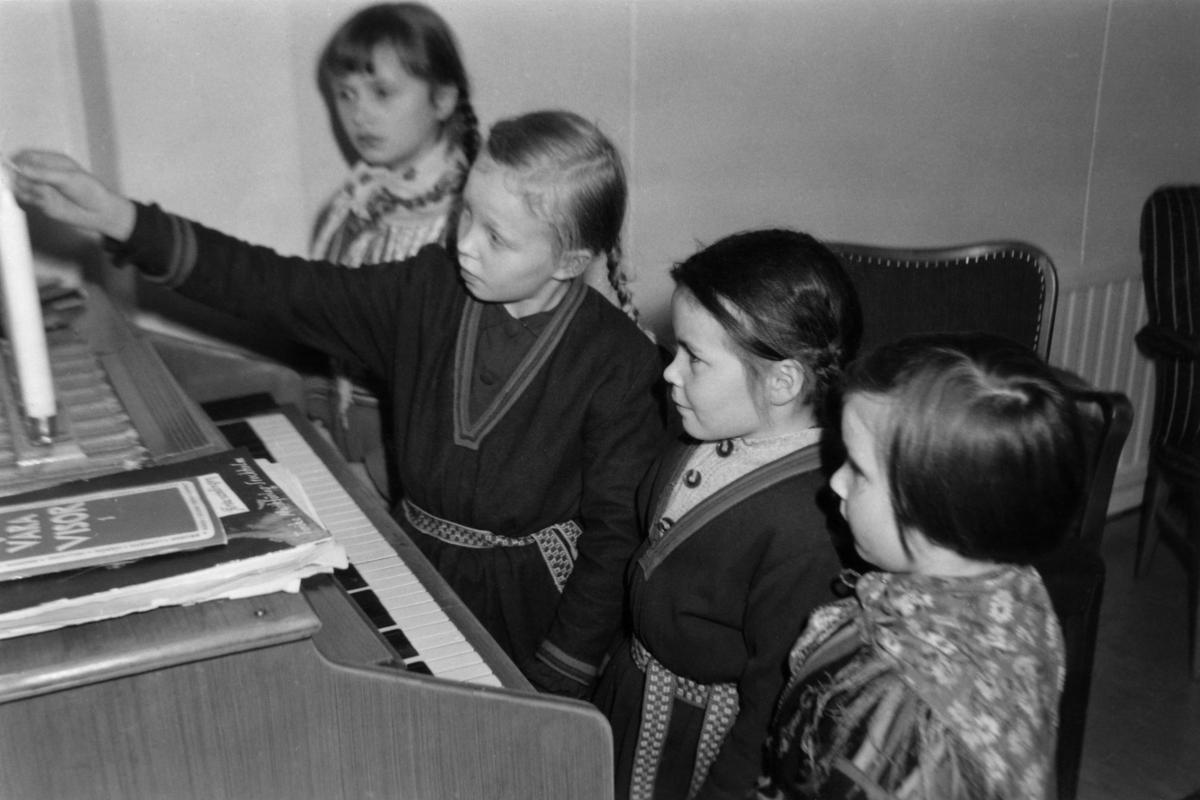 1986:5:00038:A :: högtidsceremoni, advent, skolelev, orgel, stearinljus, barn, nordsamisk dräkt
