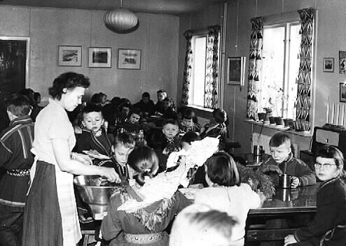 1986:5:00124:A :: nomadskola, matsal, skolklass, kökspersonal, barn