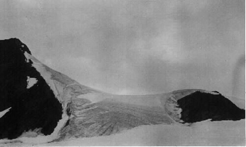 från övre delen av Tjågnorisglaciären A. H. 7 augusti 1910
