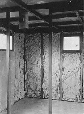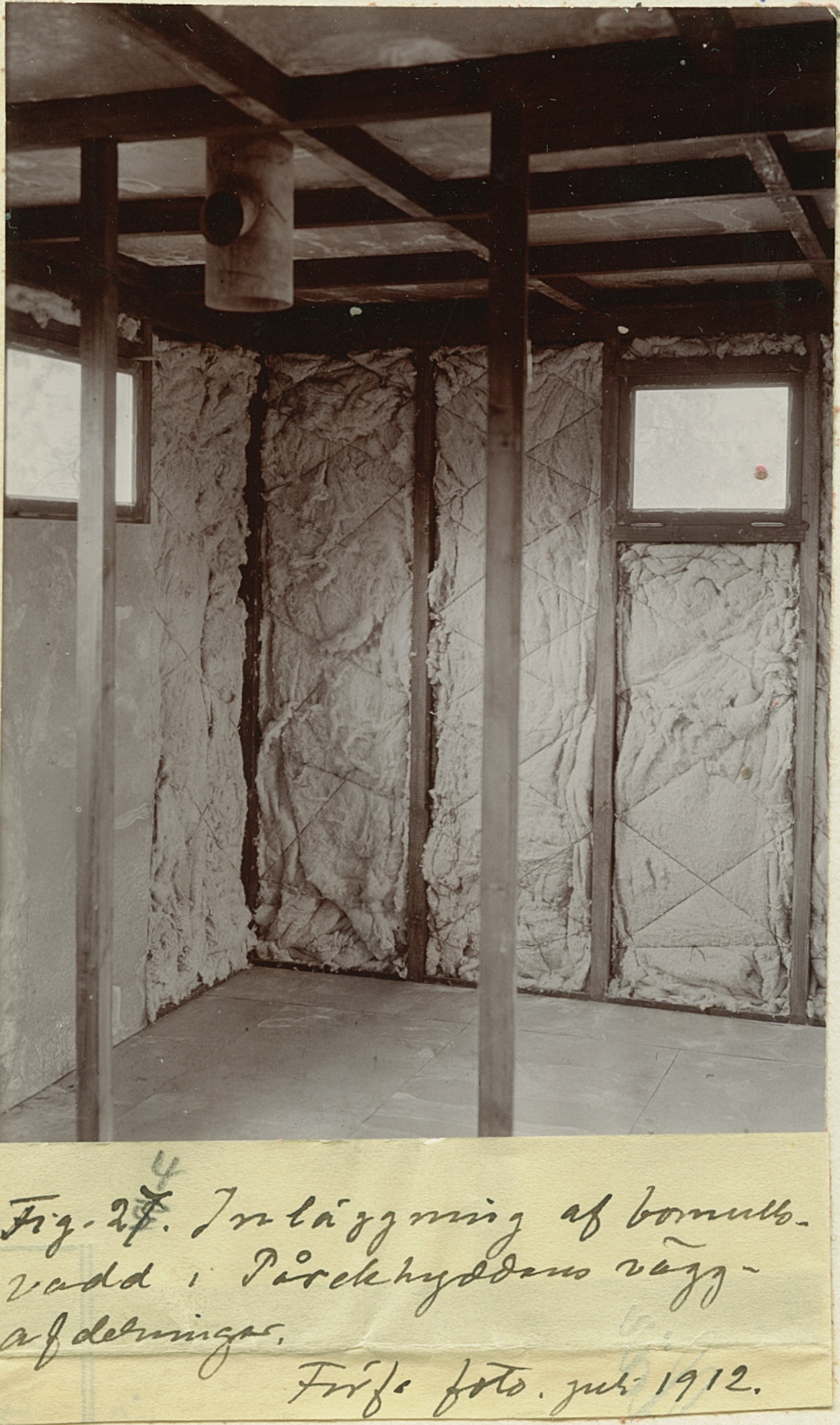 figur 4. inläggning av bomullsvadd i Pårekhyddans väggavdelningar. Förf. foto juli 1912