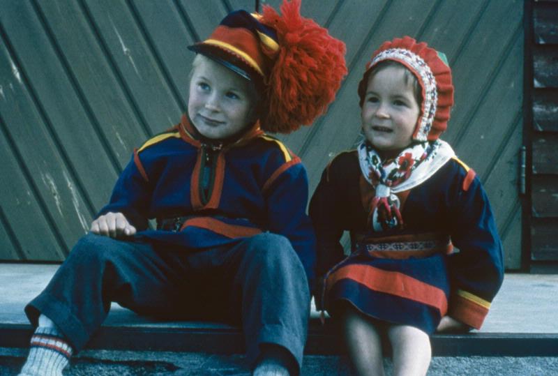 1986:8:00405:D :: barnporträtt, flicka, pojke, dräkt, barnkolt, mössa, jukkasjärvisamisk dräkt, barn