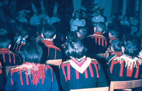 1986:8:00464:D :: luciafirande, skolklass, barn, nordsamisk dräkt, jukkasjärvisamisk dräkt