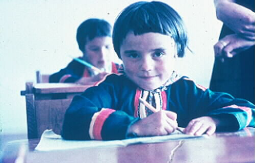 1986:8:00687:D :: skolelev, barn, skrivdon, nordsamisk dräkt, jukkasjärvisamisk dräkt