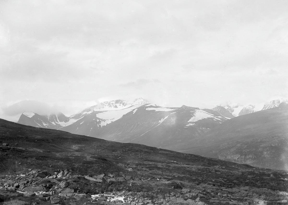Kebnepartiet och Kaskasatjåkko från fjällslätten i S. Utm ! S-s 1897