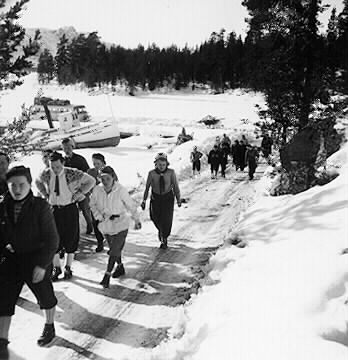 - Samernas Folkhögskolas elever, vinterkursen 1950-1951.Redogörelse för Samernas Folkhögskola i Jokkmokk 1950-1951. Ur dagboken: Mars 22-27. Hela skolan samt husmor, rektor och K. O. Lidin på skolresa till Kvikkjokk. Inkvartering på Turiststation. Längre och kortare dagsturer. Gruppbild av deltagarna, en kortare dagstur
