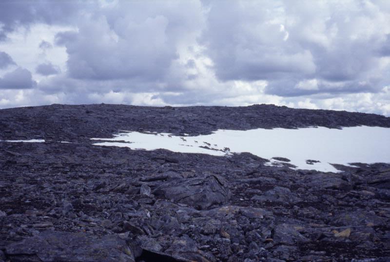 L:25:1999:1:0096 :: fjällnatur, världsarvsområde, fjäll, fjällvärld, snö, renhjord, ren, sommar