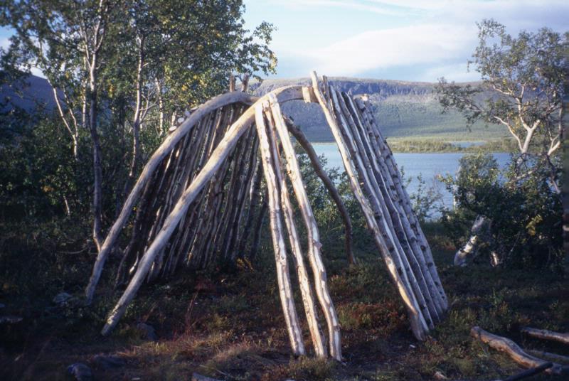 L:25:1999:1:0147 :: fjäll, fjällsjö, fjällvärld, fjällnatur, naturreservat, kåta, rökkåta, byggnadskonstruktion, björk, virke