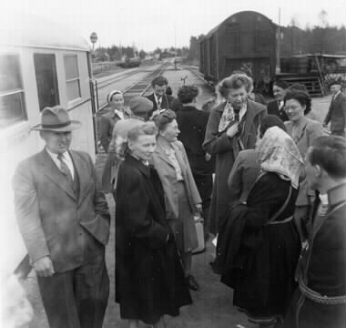 samernas Folkhögskola elever, fortsättningskurs 7 maj - 7 juni 1952. Avsked vid järnvägsstation.
