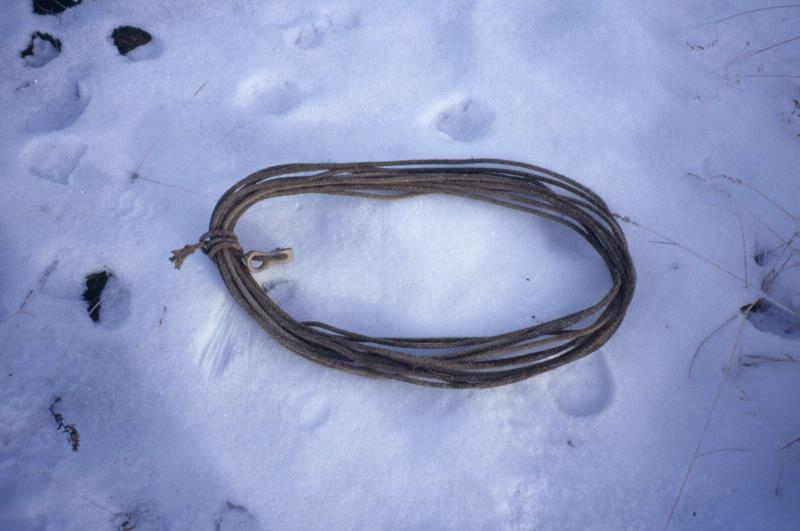 Ett otjärat vinterlasso. Hampalasson utan tjära används på vintern. Lassot är från omkring 1975, en del människor använder dem idag. Bilden är tagen i samband med fotografering av olika kastlinor, även benämnt lasson.