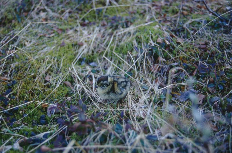 Närbild på nyfödd fjällripunge. Bilden är tagen under översvämningen i området som börjar den 27:e juni.