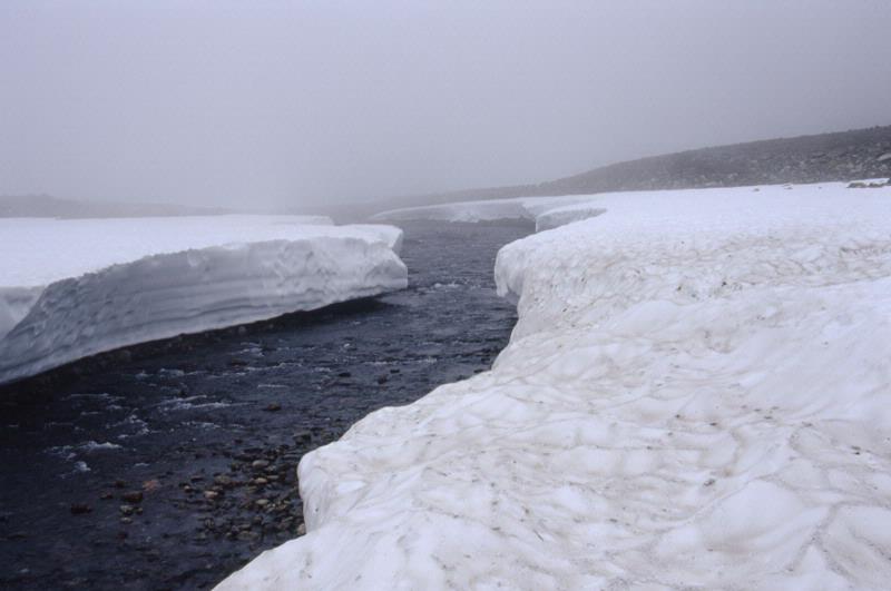 sommar, fjällvärld, fjällnatur, världsarvsområde, vattendrag, bäck, rennäring, renskötsel, snö, dimma, is