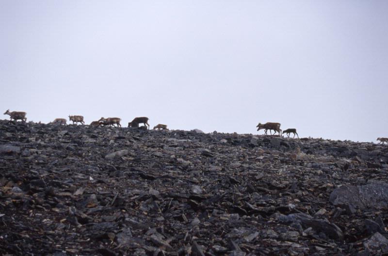 L:25:2000:1:0137 :: sommar, fjällvärld, fjällnatur, världsarvsområde, rennäring, renskötsel, fjäll, stenblock, ren, renhjord, moln