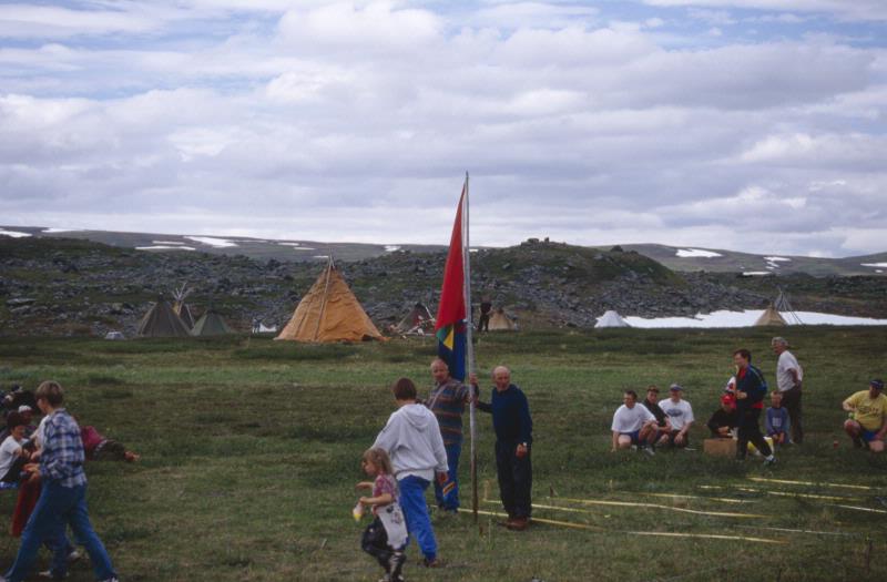 sommar, rennäring, fjällvärld, fjällnatur, fjäll, moln, världsarvsområde, kåta, tältkåta, tält, snö, jubileum, jubileumsfirande, tävling, flagga, publik