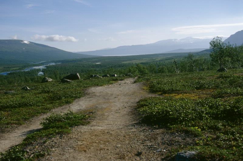 sommar, rennäring, fjällvärld, fjällnatur, fjäll, världsarvsområde, snö, fjällsjö, älv, dal, vandringsled, stig, sten