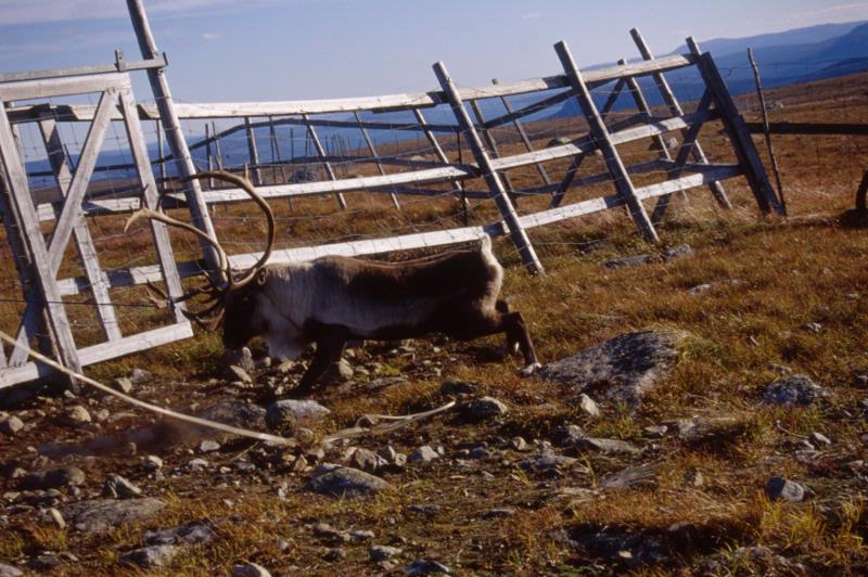 L:25:2000:2:0022 :: höst, rennäring, fjäll, fjällvärld, fjällnatur, renskötsel, renskötare, renhage, stängsel, ren, tjur, rentjur, sarv