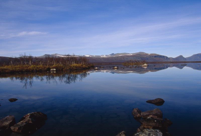 L:25:2000:2:0069 :: höst, världsarvsområde, snö, fjällvärld, fjällnatur, fjäll, fjällsjö, hamn, båthamn, viste