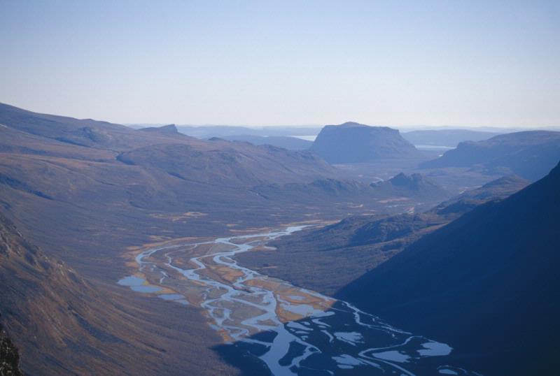 L:25:2000:2:0150 :: dalgång, delta, fjäll, fjällnatur, fjällvärld, höst, landskap, världsarvsområde, älv, sjö, fjällsjö