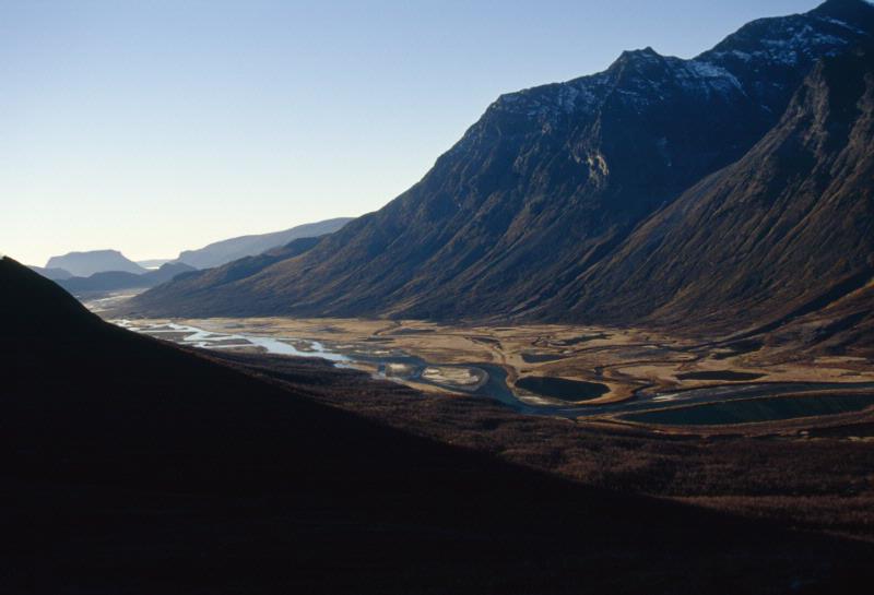 L:25:2000:2:0156 :: dalgång, delta, fjällnatur, fjällvärld, höst, landskap, sjö, världsarvsområde, älv