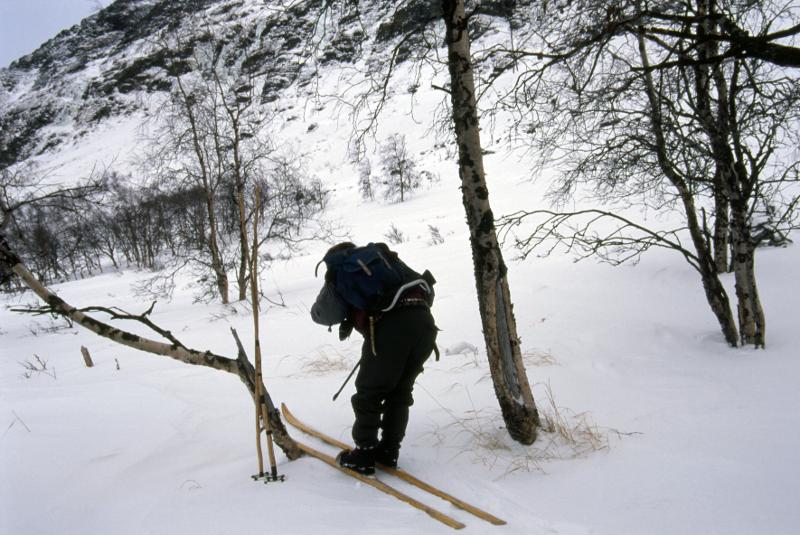 L:25:2000:3:0365 :: björk, fjäll, gevär, ripjakt, skida, snö, vapen, vinter