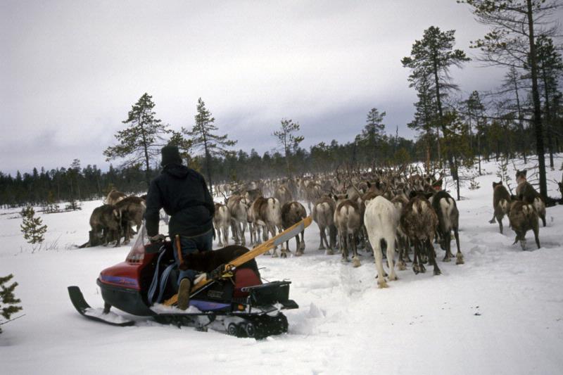 vinter, snö, skog, ren, renflock, renhjord, flyttningsled, snöfordon, snöskoter