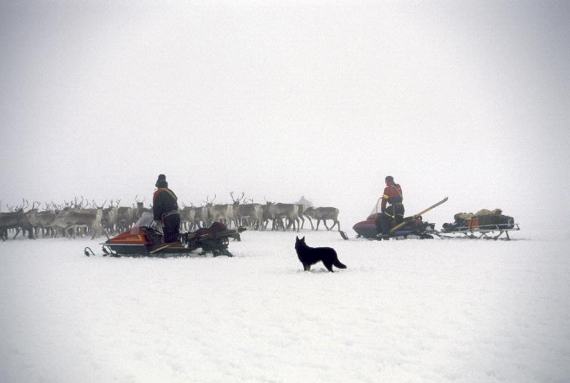 L:25:2000:4:0259 :: vinter, snö, ren, renflock, renhjord, hund, snöfordon, snöskoter, dimma