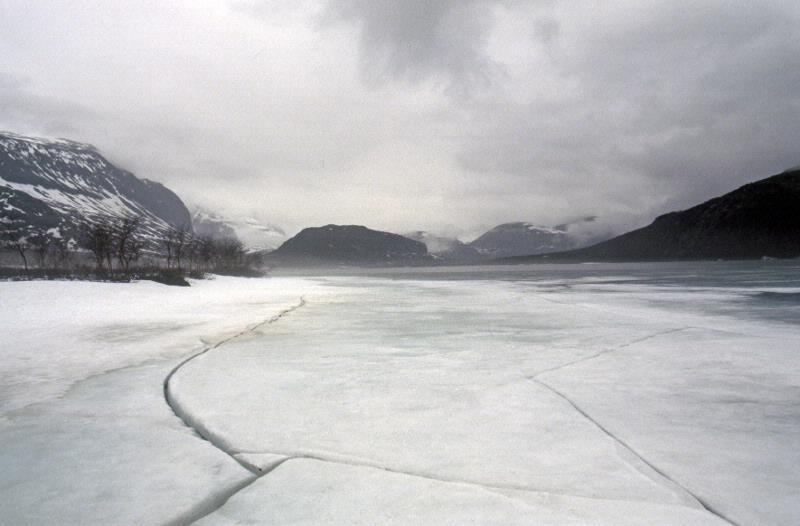 L:25:2000:4:0525 :: fjäll, fjällnatur, sjö, is, snö, björk