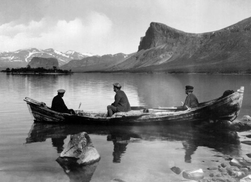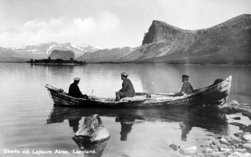 Skierffe vid Laidaure, Aktse, Lappland, 3 män i båt.