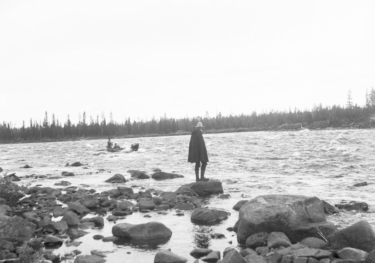 1988:4:00497:A :: älv, fors, man, strand, fiskare