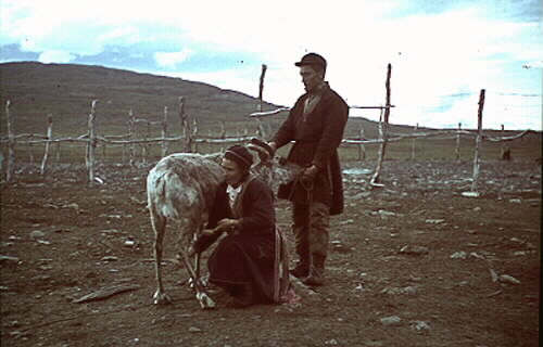 Jålle, mjölkning, en kvinna mjölkar en ren