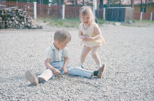 1986:5:00383:D :: gårdsplan, barn, flicka, pojke, lek, leksak