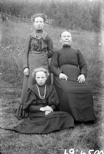familjeporträtt, kvinna, flicka, ängsmark, gärdesgård, barn
