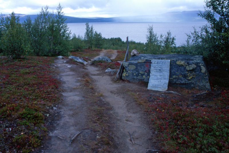 Cafeskylt på leden mellan Akkastugorna och Änonjálmme.