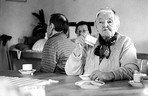 1996:33:656:A :: kvinna, ålderdom, kaffedrickande, måltid