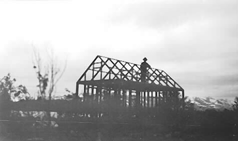HambeA:00268:A :: fjällvärld, bygge, byggnadskonstruktion, man, byggnadsarbetare, skymning
